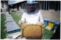 Concluzia: Gata – „Mă apuc de albine!” Aveam 10 familii. Mă convinge un prieten să merg la cursul de apicultură. Eu că nu am ce învăţa de la ăia, el că discuţi cu ai bătrâni ce merg să ia diploma şi „să vezi ce multe auzi”. Am mers pentru diplomă. Acolo am cunoscut unul din cei mai stimaţi şi înjuraţi oameni din Timiş. La a 2-a întâlnire a făcut pe „profesor” să demisioneze. El m-a învăţat să fac 30 de familii din 10, el mi-a găsit de am cumpărat lăzi pentru ele (e drept că la banii mei doar făcute cu joagărul şi nerindeluite am găsit, dar erau lăzi), el mi-a arătat prima dată cum e în pastoral, cum se colectează polenul… M-am hotărât pe dimensiunile lăzii: Dadant pe 12 cu magazie de ˝. Anul a fost superb. Am făcut 29 de familii, le-am iernat pe 5 rame. Cred ca am mai şi scos ceva miere.
